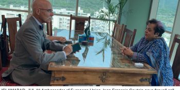 ISLAMABAD, JUL 11 (DNA) – Ambassador of the European Union to Pakistan Jean-François Cautain paid a farewell call on the Federal Minister for Human Rights Dr Shireen M Mazari here in Islamabad on Thursday. They discussed matters of mutual interest. The Minister lauded the services of the outgoing ambassador which he rendered for promotion of bilateral relations.=DNA ———-