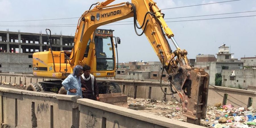 Contractor after mobilizing machinery has started demolishing existing structure of the bridge while earth and protection work will be carried out side by side.