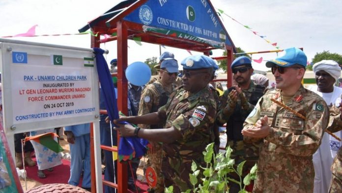 UNITED NATIONS, Nov 08 (DNA):A children’s park constructed by Pakistani peacekeepers serving the United Nations-African Union Mission in Darfur (UNAMID) in Kabkabiya, a district of North Darfur state, Sudan, was recently inaugurated by the Mission Commander, Lt .General Leonard Ngondi, according to a message received at UN Headquarters in New York on Thursday.