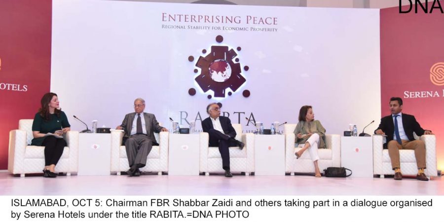 ISLAMABAD, (DNA) – Serena Hotels hosted a panel discussio nunder its Public Diplomacy Initiative ‘Raabta’ on ‘Enterprising Peace – Regional Stability for Economic Prosperity’. The panel of experts, curated by Ms. Sidra Iqbal, a prominent broadcast journalist, featured Shabbar Zaidi, Chairman FBR, Dr. Prof. Khalida Ghous, Human Rights and International Relations Activist, Fahd Husain, Senior Journalist and Ambassador Ali Sarwar Naqvi, Executive Director of the Center for International Strategic Studies (CISS).