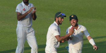 ABU DHABI: (DNA) – Medium pacer Hasan Ali and leg-spinner Yasir Shah took five wickets apiece to set Pakistan on the path to victory on the third day of the first Test against New Zealand in Abu Dhabi on Sunday. Hasan collected his maiden five-wicket haul with 5-45 while Yasir finished with 5-110 — the 14th time he has taken five in a Test innings — as New Zealand collapsed from 220-4 to 249 all out soon after tea. That left Pakistan needing 176 to win. By close they wereRead More