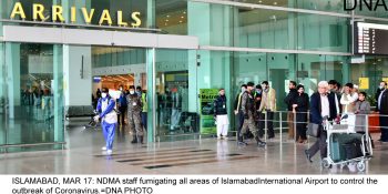 ISLAMABAD, MAR 17 (DNA) – The National COVID-19 Command and Control Centre has conducted a disinfection operation at the Islamabad International Airport, on Tuesday. The operation was conducted under the supervision of the National Disaster Management Authority. According to the NDMA, the disinfectant spray is safe for the ecology and is biodegradable. It clears all kinds of microbes within three to five minutes, the authority added.=DNA =======