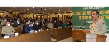 RAWALPINDI, FEB 10 (DNA) – National seminar on “Global, Strategic and Socio-Economic Impacts of COVID-19 and Pakistan” was organized by Institute of Strategic Studies, Research and Analysis (ISSRA) at National Defence University (NDU). General Nadeem Raza, Chairman Joint Chiefs of Staff Committee, in his keynote address, dilated upon the need to formulate appropriate responses and strategies emerging from the issues other than the traditional security concerns and said that all the relevant sectors of Pakistan contributed in the fight against this pandemic. CJCSC thanked President NDU and ISSRA for organizingRead More
