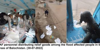 DNA ISLAMABAD, JUL 30: On the special instructions of Air Chief Marshal Zaheer Ahmed Baber Sidhu, Chief of the Air Staff, Pakistan Air Force, PAF personnel and helicopter fleet are actively engaged in providing humanitarian assistance and disaster relief support to the people stranded in flash floods affected areas of Balochistan. PAF helicopters have distributed 4200 kgs ration comprising flour, ghee, sugar, daal, tea in the calamity hit areas during the last two days. Additionally, several families have been evacuated from land locked areas to safer place. Relief operation inRead More