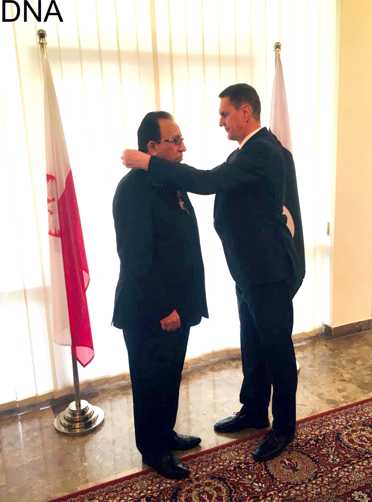 ISLAMABAD, MAY 07 (DNA) –The Ambassador of the Republic of Poland in Islamabad Piotr Opalinski decorated Khalid Hussain Memon, former Ambassador of the Islamic Republic of Pakistan in Poland, with the Commander’s Cross of the Order of Merit of the Republic of Poland. The award was given 0n the 3rd May Constitution Day of Poland.