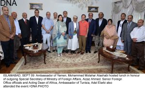 ISLAMABAD, SEPT 09 (DNA) . Ambassador of Yemen Mohammed Motahar Alashabi hosted a reception for the officials of Ministry of Foreign Affairs at his residence.