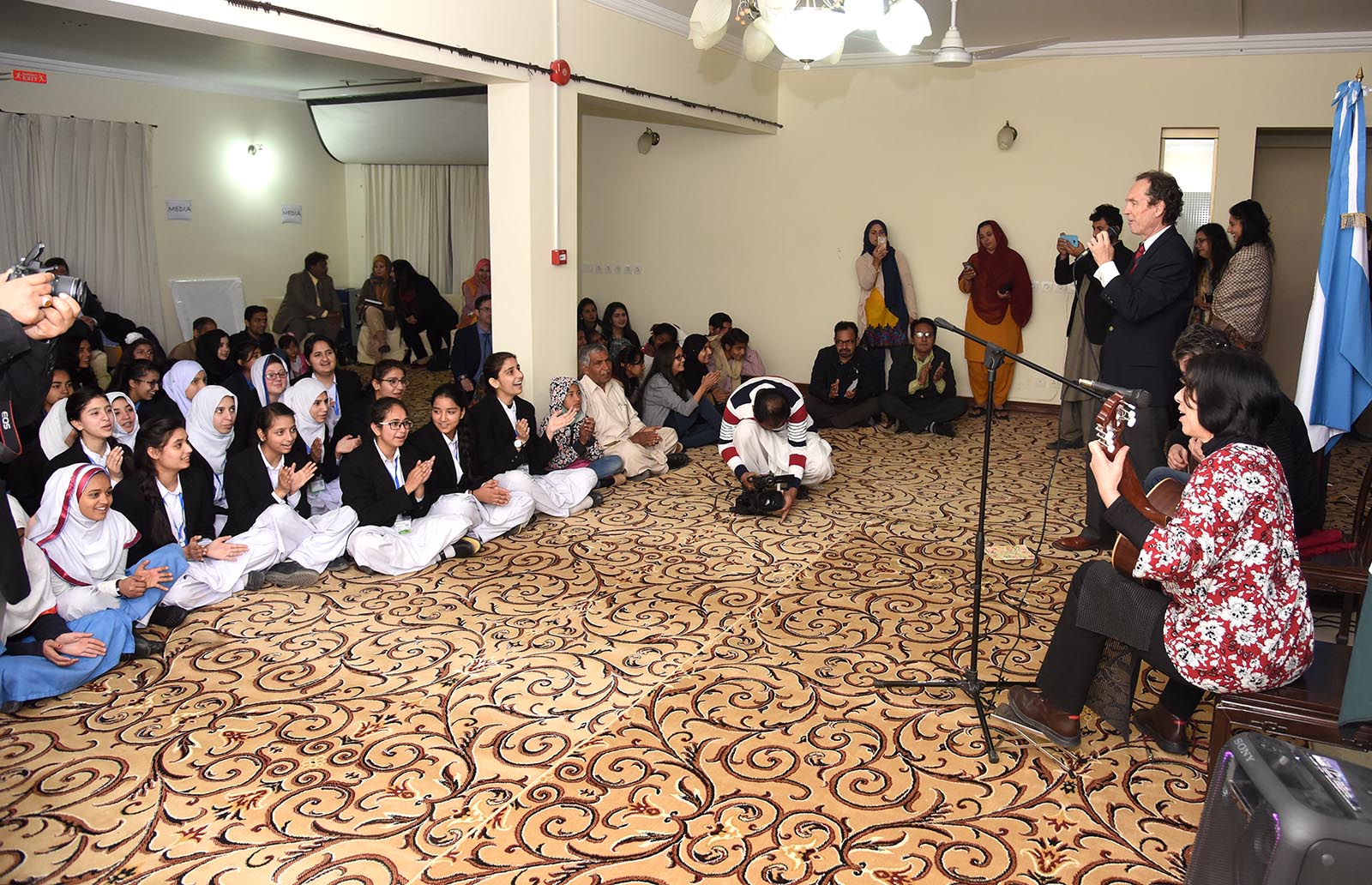 ISLAMABAD, FEB 28(DNA) – The Argentine Embassy, in collaboration with the Islamabad Serena Hotel, brought together students from various social backgrounds, this time to take part in a musical workshop conducted by the French-Argentine musician and teacher, Magdalena Ivanissevich.