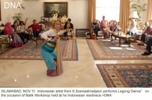 ISLAMABAD, NOV 11 (DNA) – The Indonesia cultural icon fascinated the participants of Batik workshop, who gathered at the Indonesian residence to practically take part in Batik preparation drill.