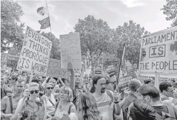 ANDREW TESTA FOR THE NEW YORK TIMESThrongs in London on Saturday protested Prime Minister Boris Johnson’s decision to suspend Parliament for five weeks.But popular faith in that approach was severely shaken last week, when Prime Minister Boris Johnson decided unilaterally to suspend Parliament at the height of a political crisis set off by his determination to achieve Brexit by an Oct. 31 deadline, with or without a deal with the European Union.