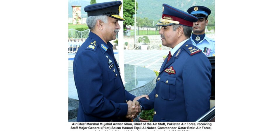 ISLAMABAD 03 September, 2019: Staff Major General (Pilot) Salem Hamad Eqail Al-Nabet, Commander Qatar Emiri Air Force, along with his delegation visited Air Headquarters, Islamabad today.