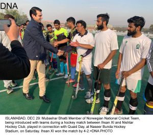 ISLAMABAD, DEC 29(DNA) – Ihsan XI defeated Nishtar Hockey Club during a friendly match played in connection with Quaid Day, at Naseer Bunda Hockey Stadium, on Saturday