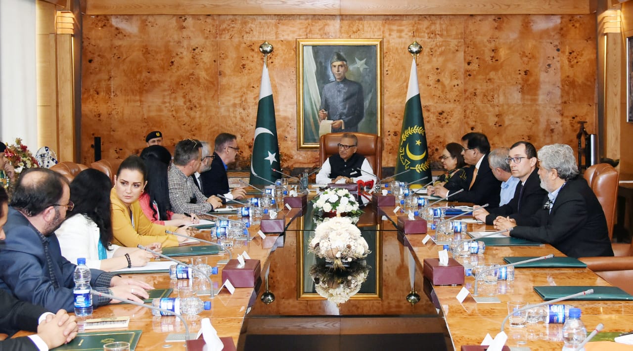 ISLAMABAD; SEPTEMBER 20(DNA)- : The belligerent Indian leadership, with its thumb on nuclear button, is doggedly hinduizing India and persecuting minorities and has, therefore, become a threat not only to the regional and world peace, but also to the very social fabric of India itself, said President Dr. Arif Alvi, while talking to Turkish Media Delegation, led by Prof. Dr. Halil Toker, who called on him at the Aiwan-e-Sadr, Islamabad on Friday.