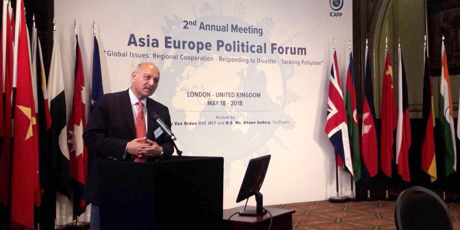 LONDON, MAY 20 (DNA) – Chairman, Senate Foreign Affairs Committee, Senator Mushahid Hussain, urged Parliamentarians and political leaders of 25 countries of Asia and Europe to promote connectivity & cooperation, where Pakistan is a pivotal player, to tackle challenges like Climate Change & Combating Poverty & Disease.