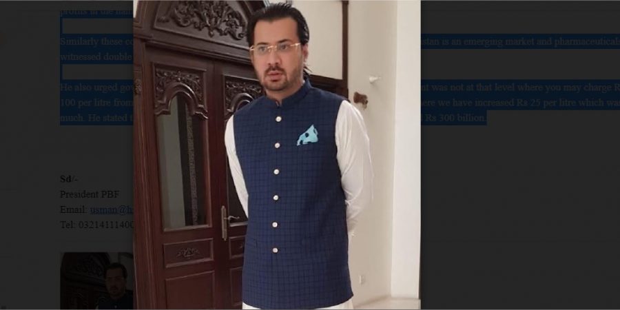 Lahore: JUNE 28 – President, Pakistan Businesses Forum (PBF) Mian Usman Zulfiqar has demanded that Pharmaceutical sector should be regulated by the government in a proper manner so that public can get competitive prices of medicines especially in ongoing pandemic.
