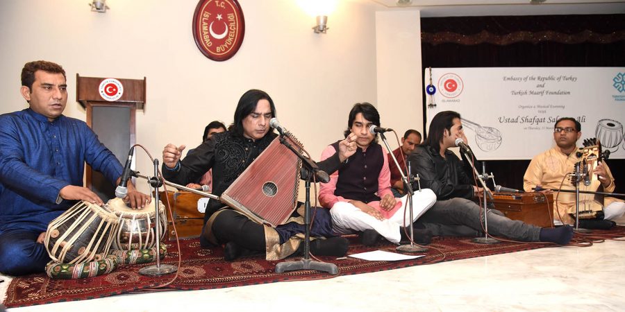 ISLAMABAD, MAR 22 (DNA).. Renowned classical singer of Pakistan Ustad Shafqat Salamat Ali performed during a musical night organized by the Turkish embassy.