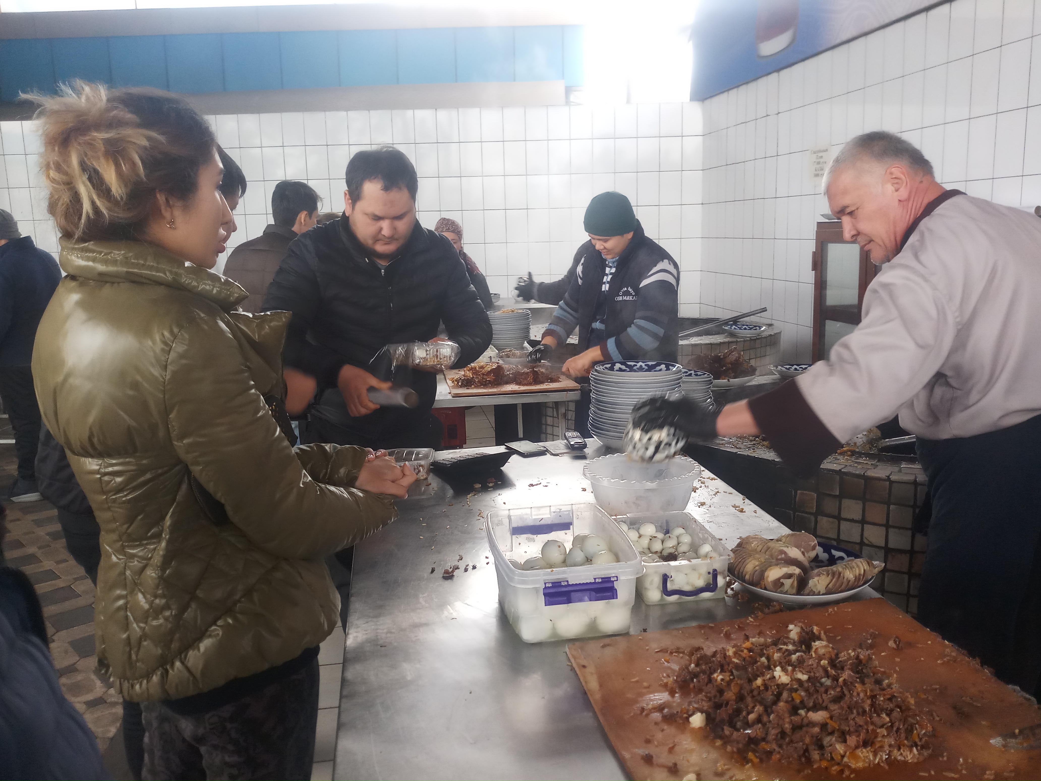 The hosts wanted to offer me traditional Uzbek delicacy PILAF and therefore took me to the largest pilaf center in the Central Asia named Osh markaz. Upon inquiry, I was told that about 4,000 pilaf lovers visit the place every day.