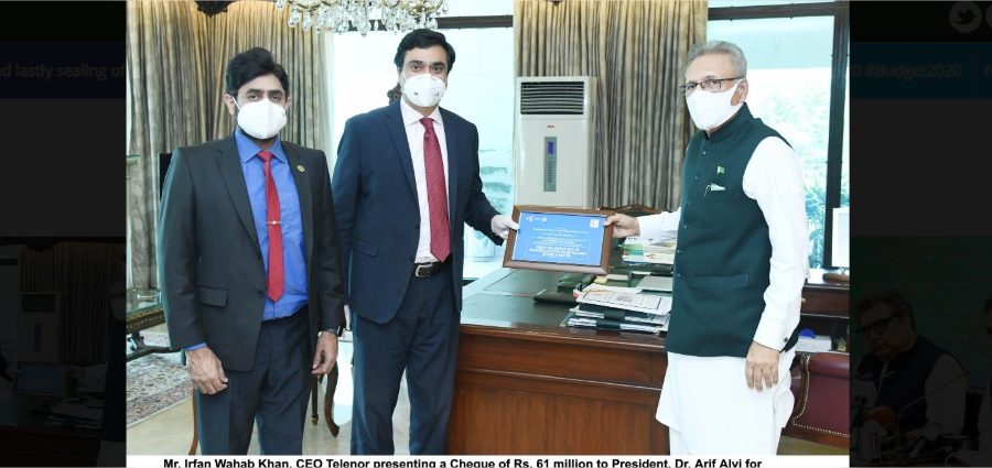 The CEO Telenor presented a donation worth of Rs. 61 million to the President to support the relief efforts of the Pakistan Red Crescent Society (PRCS) against Covid-19 in the country. He informed the President that Telenor Pakistan had joined hands with PRCS to provide food ration packs for 4500 poor families in nine districts and Personal Protective Equipments to doctors and Paramedics in eleven districts of the country affected by Covid-19.