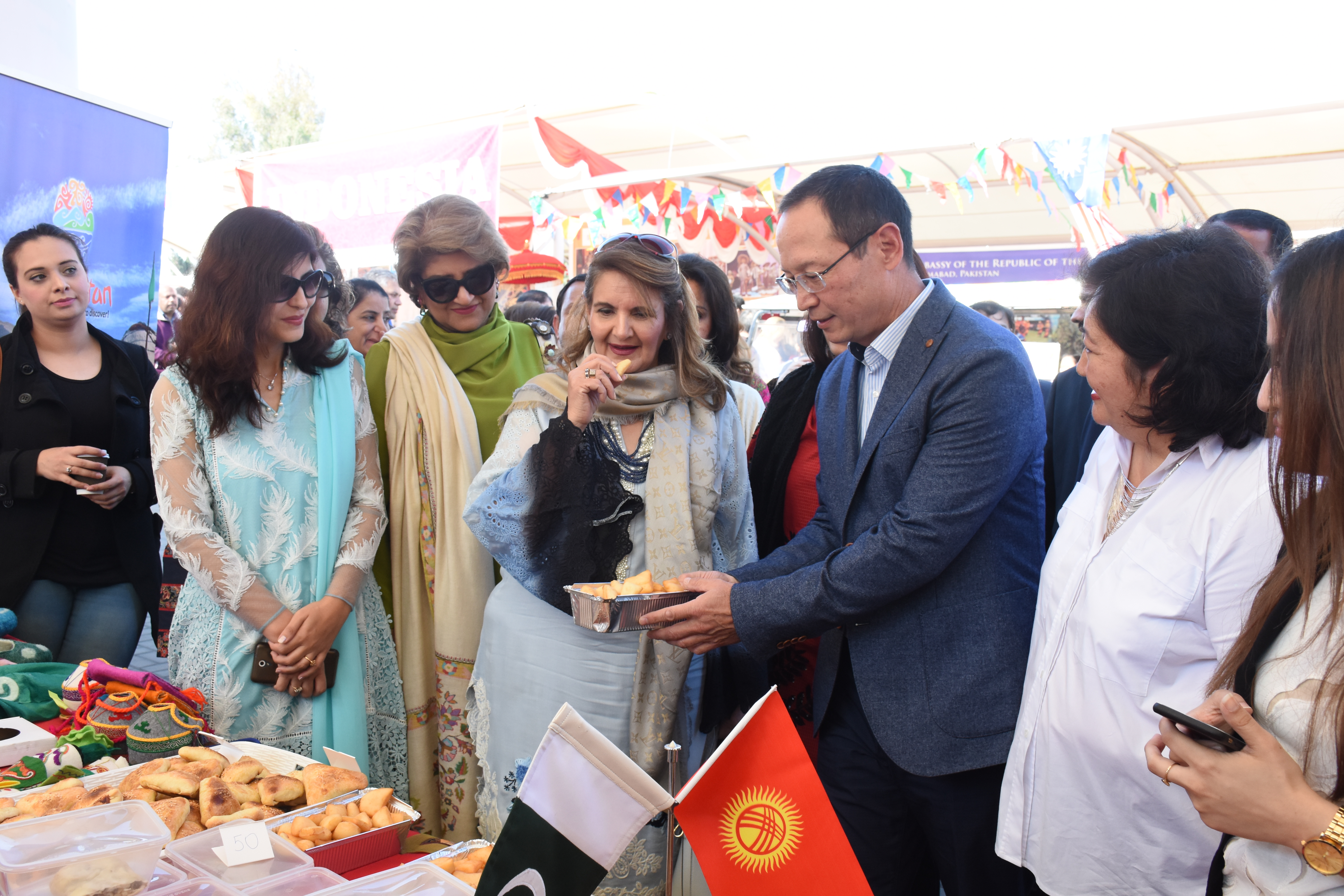 First Lady, Samina Alvi inaugurated the charity bazar at the premises of Foreign Affairs Ministry, where stalls showcased traditional artefacts of countries including China, Tajikistan, Saudi Arabia, Morocco, Russia, Azerbaijan, Indonesia, Egypt, Iran, Japan, Maldives, Central Asian states, Malaysia, Portugal, Sri Lanka, Sudan, Tunisia, Turkey, Uzbekistan and Yemen.